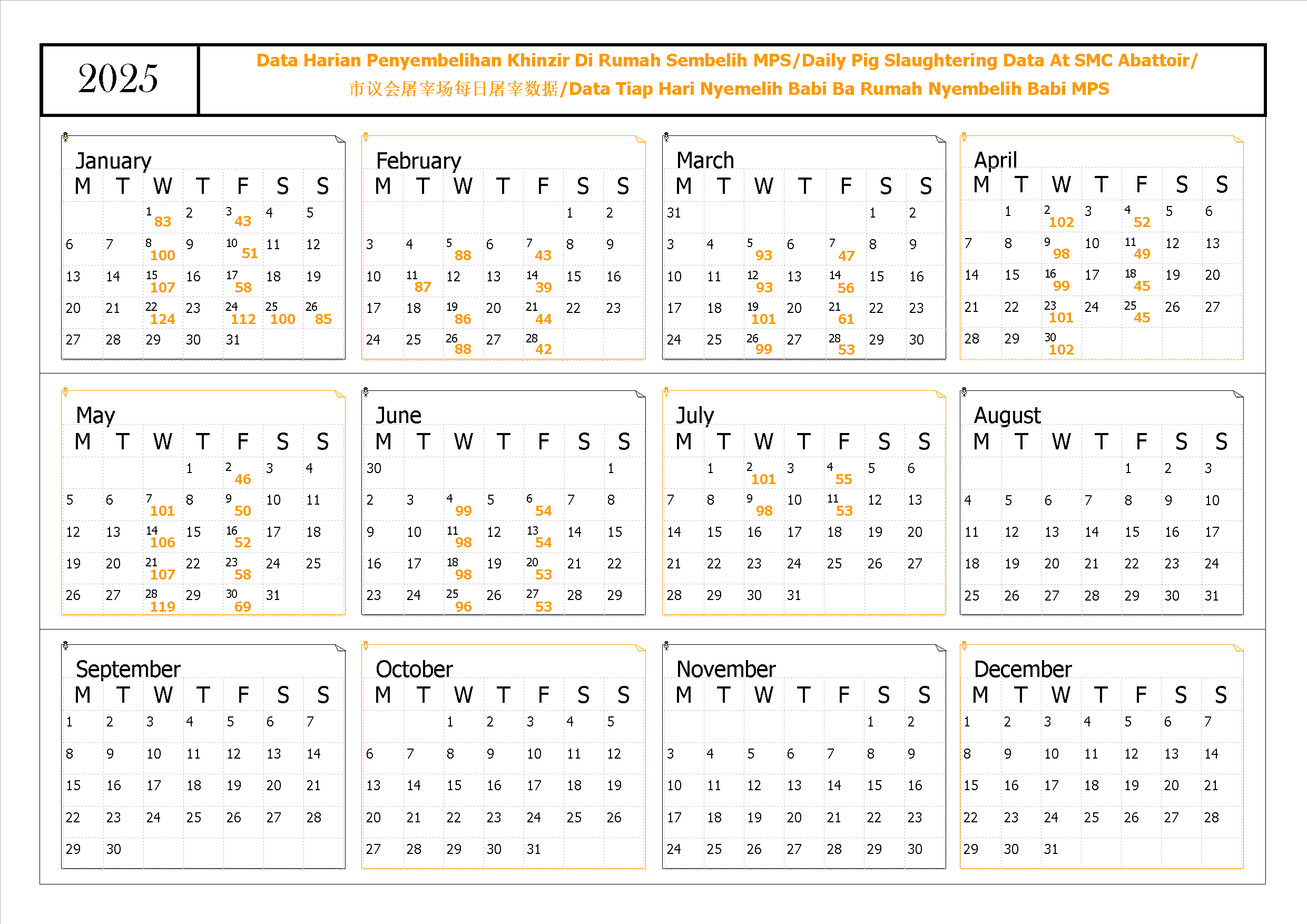 Data Harian Penyembelihan Khinzir Di Rumah Sembelih MPS