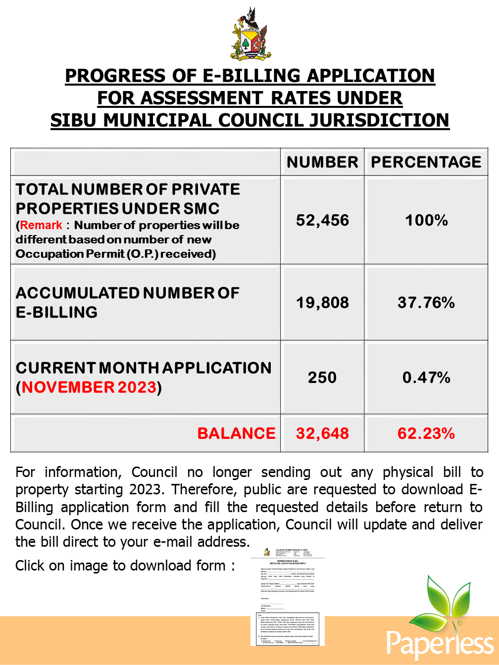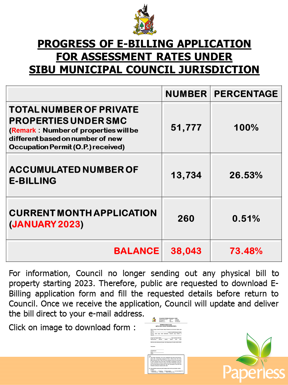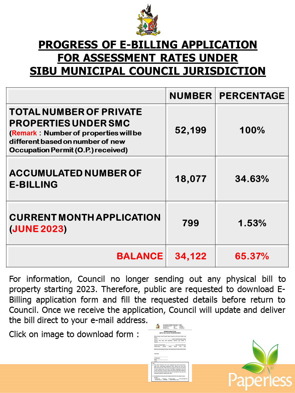 Kemajuan Permohonan e-Bil Untuk Cukai Taksiran Pintu 2023